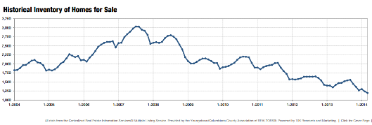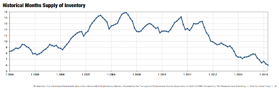 Check out this chart showing housing inventory levels from 2004 to 2014. It's a little hard to read, but each indicator across the bottom of the chart is a year . . . from 2004 to 2014.